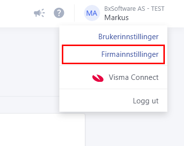 - Trykk på brukerikonet oppe i høyre hjørne deretter velg Firmainnstillinger