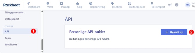 For å integrere med Rackbeat må du opprette en API-nøkkel. Dette må gjøres av en bruker med administratortilgang i Rackbeat.