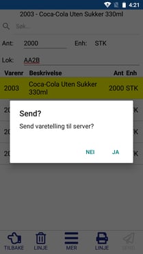 - Når du er ferdig på terminalen trykker du "Send" for å sende inn tellingen.